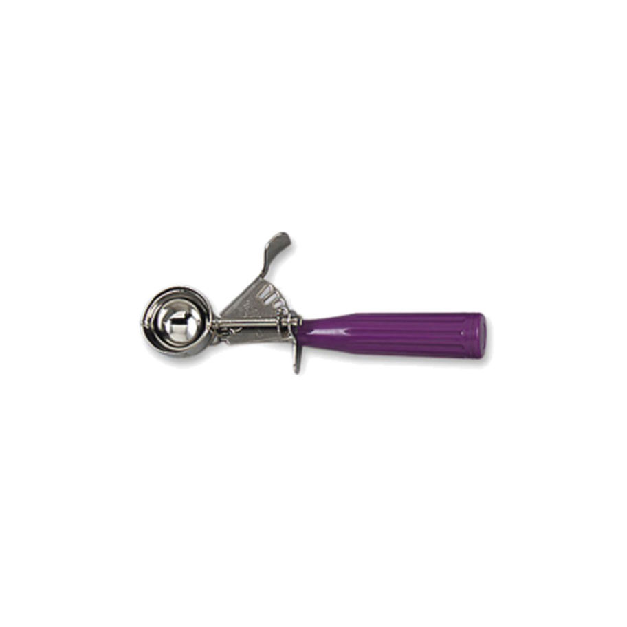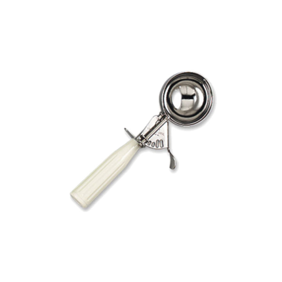 Cuchara para helado o nieve con gatillo. Mientras más pequeña la denominación, más grande la bola de helado.