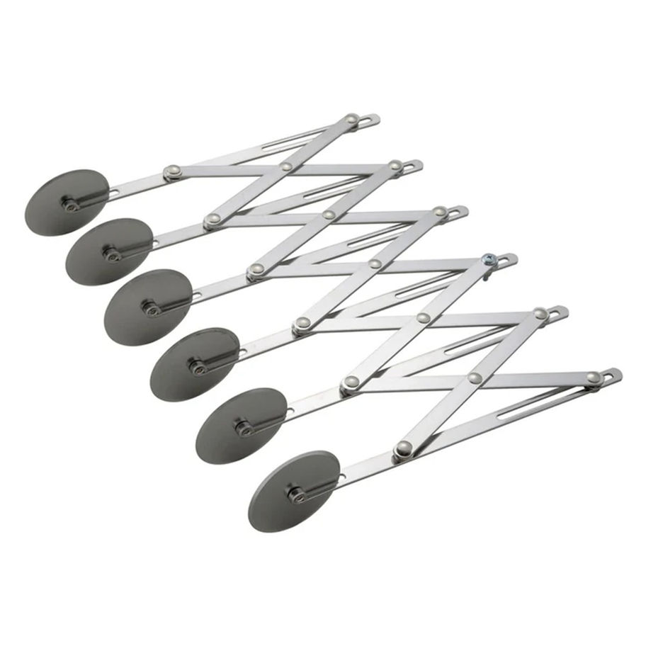 Corte grandes cantidades de masa en porciones consistentes con el cortador de masa de 5 o 6 ruedas. Para mayor flexibilidad, este divisor de masa tiene un acordeón ajustable diseñado para cambiar el ancho de los cortes fácilmente.